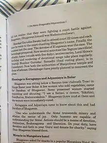 Pages from a book that describes the first meeting of Bhagawan Nityananda and Adhyaksha Koragappa at Hoige Bazaar, Mangalore