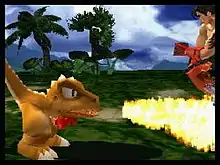 Gon using his fire breath against Jin Kazama in Tekken 3.