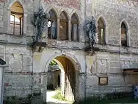 The entrance of Prešnik Mansion, decorated with tin sculptures