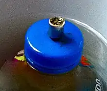 The construction of a bucket bong (or simply a "bucket") calls for a plastic bottle (about 2 litres (0.53 US gal)), a Hex Bit Socket used as the bowl, an aerator screen cut to fit the bowl, and a large bucket or other container into which both the bottle and a sufficient amount of water will properly go. The plastic bottle's base is cut off, and the bottle's cap has a small hole in the center which will eventually hold a bowl. The screen is placed inside of the bowl. The cut nozzle is threaded into the hole outside the cap.[1][2]