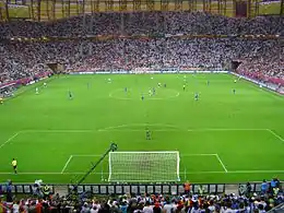 For the first time in history the final was a repeat of the opening match, with Greece and hosts Portugal facing off in a rematch. In the 57th minute Charisteas gave Greece the lead with a header from a corner by Angelos Basinas.[22] Portugal had much of the possession, but the Greece defence was solid and dealt with most attacks. Cristiano Ronaldo had a good chance to equalise in the dying moments, but could not apply a finish. Greece held on to win 1–0, winning the tournament, an achievement considered by many to be one of the greatest football upsets in history, if not the greatest.[23][24][25] Greece captain Zagorakis was named the player of the tournament, having led Greece and made the most tackles in the entire tournament.[26]