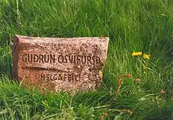 Commemorative stone for Guðrún at Helgafell on Snæfellsnes