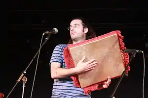 Guillem Ballaz i Bogunyà (born 17 August 1978) is a Catalan musician who has focused his work on Catalan traditional music. First through groups like Sol i Serena, and later under his name in a more personal project. He has also made an important task studying and revitalizing the Catalan square tambourine "pandero quadrat" and their tunes and Catalan folk violin.