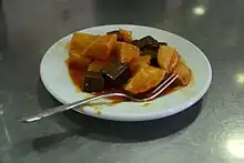 Guiso is a Spanish meat dish prepared by roasting or frying combined with braising. It is typically a hot, mildly fatty food. Unlike stew, it allows the vapors to circulate during culinary process.[1] In making guiso, a wide variety of ingredients may be used relative to region, season, availability, and taste.