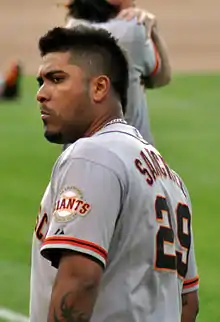 On July 21, 2015, Sánchez hit his second career grand slam off Dale Thayer of the San Diego Padres.[13] In early September, Sánchez strained his left hamstring and sprained his left ankle running to first base and missed the rest of the season.[14] After the season, Sánchez was not tendered a contract by the Giants and became a free agent.[15]