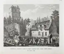 While still maintaining order in Paris in May by drastic measures, the baron withdrew the troops from Paris on 12 July in the hope of avoiding a bloodbath. However, this enabled the Taking of the Bastille on 14 July by revolutionary insurgents. On the part of the aristocrats, the baron was heavily criticized for his behavior. François-Emmanuel Guignard, Comte de Saint-Priest, was furious and accused the baron of incompetence. In his memoirs he wrote contemptuously: "A dozen battalions of foreign troops stationed on the Champ de Mars and a few regiments of cavalry were available to the Baron de Besenval, Swiss lieutenant-general and commander of Paris. Besenval didn't show up, didn't give orders, and locked himself in his house for fear that people might come and loot it." [34]