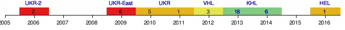 Ukrainian Hockey Extra LeagueKontinental Hockey LeagueRussian Major LeagueUkrainian Hockey ChampionshipUkrainian Hockey ChampionshipUkrainian Hockey Championship2015–16 Ukrainian Hockey Extra League season2012–13 KHL season2012–13 KHL season