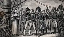 On 20 September Lieutenant William Elliot Wright was appointed acting commander at Saint Helena.[26][lower-alpha 4] On Griffon's return to Britain Wright's appointment was confirmed on 20 August 1817. However, Wright then underwent a court martial for having smuggled 53 yards of crepe and other contraband while Griffon was at Portsmouth. The court ordered Wright dismissed the service. However, he was reinstated in 1819 without loss of rank.[26]