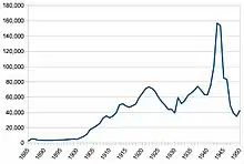 Traffic grew to a peak in World War 2, as shown in the graph and table below.