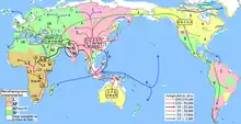 ,[16] later (2011) narrowed to the somewhat younger 65±5 kya.[1] Thus, haplogroup M would have emerged around 10,000 or at most 20,000 years after L3, around or somewhat after the recent out-of-Africa migration event.