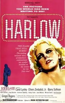 Harlow is a fictionalized 1965 Electronovision drama film based on the life of screen star Jean Harlow (Carol Lynley) and directed by Alex Segal. It was Ginger Rogers' final film role.[1]