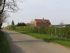 Listed buildings in the hamlet centre on Hawthorpe Farm, including a 17th-century farmhouse, 19th-century cottages, and 17th- to 19th-century barns and stables, all Grade II.[5][6][7]