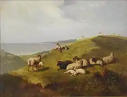 Landscape with cattle (RA, 1846 - collaboration with Frederick William Hulme) • River Avon, near Bristol, with the Tower of Cook's Folly • A Quiet Homestead in Surrey (British Institution, 1855) • Early Morning - going a-field (1855 Paris Exposition) • A sunny scene on the Severn (1855 Paris Exposition) • Lights and shadows on the Conway (Society of British Artists, 1855) • Scene in the valley of the Lleddr (Liverpool Academy, 1855) • Harvest Horses (1856) • A Family Group (British Institution, 1857) • Oxen, Mid-Day Rest • Blessings of a shepherd's life (1862) • Harvesting in Sussex • Harvesting:Sunset (1863, watercolour) • Highland Cattle (1866) • Ben Cruachan cattle coming south (1867) • Farm Horses (RWS, 1867) • View near Coal Pit Heath (Bristol Society of Artists, 1840)[6] • Hastings Castle by Moonlight • View of the Castle of Kautz (watercolour) • Drover with cattle watering • Landscape with sheepherder and dog • Landscape with figure on a Log in the Foreground (watercolour) • A Group of Cows (1871).