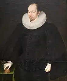 As a young man Cavendish "won repute as a soldier",[1] serving his country as a captain in the Netherlands in 1578, during the Dutch Revolt. Cavendish led a force of around 500 men, mostly from his family estates,[3] successfully fighting off an attack by Spanish tercios led by Don Juan of Austria during the Battle of Rijmenam.[4] War however was costly, and the expense of campaigning in the Netherlands was likely the initial cause of his considerable debts, which amounted to £3,000 by 1584.[3]