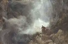 Whaite displayed a vibrant style in his watercolours, and was noted for his ability to capture changing weather conditions in his landscapes, which often evoked a religious wonder.[6] His religious beliefs were a strong influence on his work, and although his faith emerged in his work through an attached moral significance to the landscape, he also painted explicitly Christian themes as in The Awakening of Christian (c. 1885) and Arthur in the Gruesome Glen.[6]