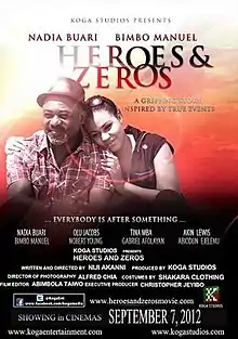 Heroes and Zeroes is a 2012 Nigerian drama film written and directed by Niji Akanni; it stars Nadia Buari, Bimbo Manuel and Olu Jacobs.[2][3] It premiered on August 31, 2012 at Silverbird Galleria, Lagos.[4] It was nominated in 6 categories at the 9th Africa Movie Academy Awards, winning awards for Best Director, Best Screenplay and Best Editing.[5]