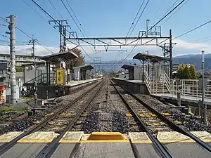 Higashi-Yamanashi Station (東山梨駅, Higashi-Yamanashi-eki) is a railway station of the Chūō Main Line, East Japan Railway Company (JR East) in Sangasho, in the city of Yamanashi, Yamanashi Prefecture, Japan.