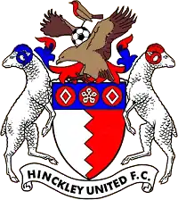 The original club crest for Hinckley United was the Arms of Honour of Hinckley, basically a red and white halved shield divided in half by a serrated line. The club crest was relaunched in 2004 still incorporating the Arms of Honour of Hinckley but also taking elements of the Borough of Hinckley and Bosworth crest and mascots of the two merged clubs Hinckley Athletic and Hinckley Town. The rams were added from the Borough crest signifying the hosiery industry in the town, and Hinckley Town's eagle plus Hinckley Athletic's robin were placed atop the crest.[21]