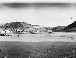 From the Umayyad period until Ottoman times, the town of Ma'an served as a market place for the pilgrims on the Syrian route.[46] In the Egyptian route, the pilgrims would gather in Cairo, and after four days, start for the ground of Ajrud (24 kilometers northwest of Suez), and from there they would reach Suez, and crossing the Sinai Peninsula through Al-Nakhl point, they would reach Aqaba (in south part of present-day Jordan), then traveling parallel to Red Sea, they reach Yanbu, then proceed to Medina, and finally reach Mecca.[47][44] The hajj caravans would start their pilgrimage journey from there, traveled by land or sea and through deserts, and, after the performance of pilgrimage, return there. The total journey would take approximately two to three months on average.[47][21]