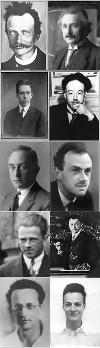 The history of quantum mechanics is a fundamental part of the history of modern physics. The major chapters of this history begin with the emergence of quantum ideas to explain individual phenomena—blackbody radiation, the photoelectric effect, solar emission spectra—an era called the Old or Older quantum theories.[1] Building on the technology developed in classical mechanics, the invention of wave mechanics by Erwin Schrödinger and expansion by many others triggers the "modern" era beginning around 1925. Paul Dirac's relativistic quantum theory work lead him to explore quantum theories of radiation, culminating in quantum electrodynamics, the first quantum field theory. The history of quantum mechanics continues in the history of quantum field theory. The history of quantum chemistry, theoretical basis of chemical structure, reactivity, and bonding, interlaces with the events discussed in this article.