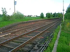 The station is now closed, although the line through the station is still open. One platform still exists and a level crossing controlled by a signal box. The small village of Holywood with its church stands a little way off and the old creamery stands close by to the station site.