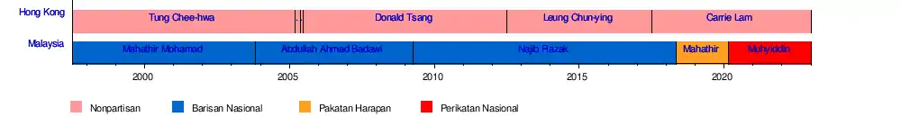 | First Leader | Tung Chee-hwa | Abdul Rahman of Negeri Sembilan (Monarch) Tunku Abdul Rahman (Prime Minister) |