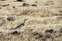 The houbara bustard (Chlamydotis undulata), also known as African houbara, is a relatively small bustard native to North Africa, where it lives in arid habitats. The global population is listed as Vulnerable on the IUCN Red List since 2014.[1] There is a population in the Canary Islands which has been assessed as Near Threatened in 2015.[2]