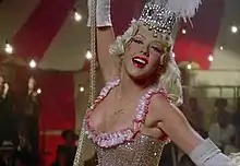 Aguilera portraying a 1940s circus star in the music video for the song