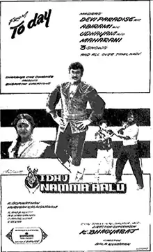 Idhu Namma Aalu (lit.'He is our man'; contextual: He is from our caste) is a 1988 Indian Tamil-language comedy film written by K. Bhagyaraj and directed by Balakumaran in his debut.[2][3] It was released on 1 August 1988. The film was remade in Telugu as Adirindhi Alludu (1996),[4] and twice in Kannada: as Aliya Alla Magala Ganda (1997) and Ravi Shastri (2006).[5]