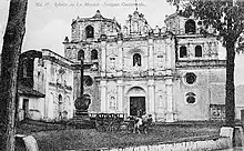 Image of La Merced in 1875. The church is in good condition, after having withstood the earthquakes of 1773. Photograph by Eadweard Muybridge.