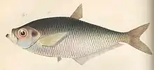 Ilisha africana, called the West African ilisha, is a species of longfin herring native to the coasts, lagoons and estuaries of western Africa from Senegal to Angola. It prefers shallow waters, and is unlikely to be found below 25 m. Some individuals can reach 30 cm, with the average closer to 18 cm.