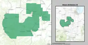 The 18th congressional district of Illinois covered central and western Illinois, including all of Jacksonville and Quincy and parts of Bloomington, Peoria, and Springfield. It was last represented by Republican Darin LaHood, who took office in September 2015 following a special election.[1]