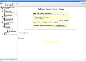![]() The Indexing Service Query Form, used to query Indexing Service catalogs, hosted in Microsoft Management Console. | |