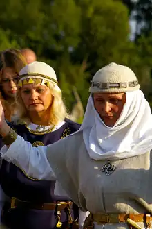 Inija Trinkūnienė (born October 25, 1951, in Kelmė) is a Lithuanian ethnologist, folklorist, sociologist, psychologist, head of folk music group Kūlgrinda and the high priestess (krivė) of the Romuva community of the old Lithuanian faith. She became the high priestess after the death of the previous high priest (krivis), her husband Jonas Trinkūnas, in 2014.[1] She is a founding member of the European Congress of Ethnic Religions.[2] She holds a master's degree in psychology from Vilnius University.[2] She was a featured speaker in the Indigenous Plenary Session at the Parliament of the World Religions in Toronto in 2015.[3]