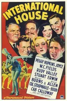 International House is a 1933 American pre-Code comedy film starring Peggy Hopkins Joyce and W. C. Fields, directed by A. Edward Sutherland and released by Paramount Pictures. The tagline of the film was "The Grand Hotel of comedy". It is a mixture of comedy and musical acts tied together by a slim plot line, in the style of the Big Broadcast pictures that were also released by Paramount during the 1930s. In addition to some typical comedic lunacy from W. C. Fields and Burns and Allen (George Burns and Gracie Allen), it provides a snapshot of some popular stage and radio acts of the era. The film includes some risqué pre-Code humor. The cast also features Cab Calloway with his orchestra and Bela Lugosi.