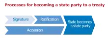 Processes for becoming a state party to a treaty - the Convention Relating to the Status of Refugees (CSR) (adopted in 1951 and entered into force in 1954);