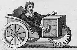 Stephan Farffler was a Nuremberg watchmaker of the seventeenth century whose invention of a manumotive carriage in 1655 is widely considered to have been the first self-propelled wheelchair. He is believed to have been either a paraplegic[1][2] or an amputee.[3] As such, the chair was consistent with the later designs for self-propelled invalid carriages. The three-wheeled device is also believed to have been a precursor to the modern-day tricycle and bicycle.[4]