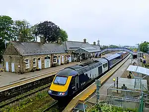 Inverurie railway station is a railway station serving the town of Inverurie, Aberdeenshire, Scotland. It is managed by ScotRail and is on the Aberdeen to Inverness Line, which is mostly single track north of this point, between Kintore and Insch. It is measured 16 miles 72 chains (27.2 kilometres) from Aberdeen.[5]