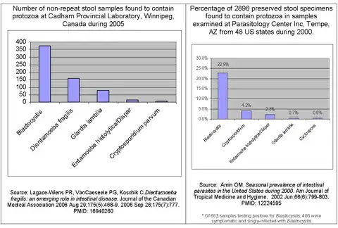 Prevalence of protozoal infections in industrialized countries (United States and Canada) in the 21st century[52][53]