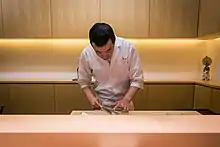 Chef Ishikawa cutting fish