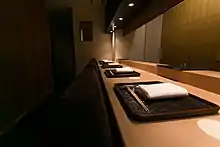 The restaurant has four private rooms and can seat seven at the counter.[5]