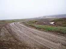 View on the road between the now abandoned settlements of Polyarny and Leningradsky in the far north of the district
