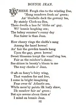 • 1888: The Deeside Lass, and Other Poems.[16] The long poem is the story of the laird’s son Donald who falls in love with the servant girl Jean who had been taken in as an orphan; the laird sees the virtues in Jean, but the laird’s wife is furious, and the pair run off.