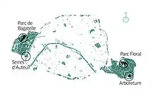 Location map of the sites of the Paris Botanical Garden