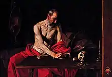 Saint Jerome Writing, by Caravaggio, 1607, at St John's Co-Cathedral, Valletta, Malta