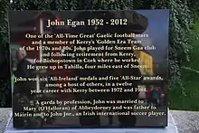 1. 1 2 Moran, Seán. "Kerry great John Egan passes away". The Irish Times. Retrieved 8 April 2012.