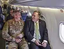 Nicholson was the longest-serving commander of the War in Afghanistan, having led the 41-nation NATO-led Resolute Support Mission and United States Forces-Afghanistan for two and a half years from March 2016 to September 2018.[12][13][14] Nicholson told the Senate Armed Services Committee in 2016 that "Since 9/11, the U.S. campaign in Afghanistan has largely defined my service."[15][16] He assumed command from General John F. Campbell on March 2, 2016.[17] Nicholson was given command of the Resolute Support Mission in Afghanistan, amid a worsening security situation.[18][19][20][21] Nicholson apologized in person for U.S. involvement in the Kunduz hospital airstrike.[22][23]