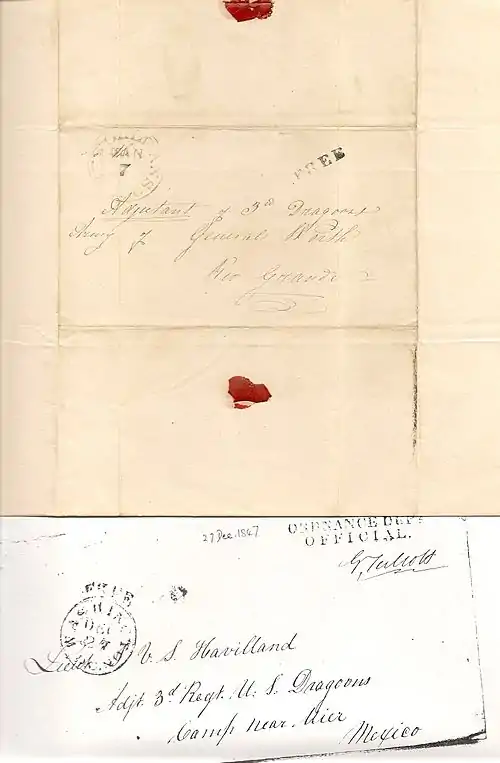 John de Havilland served as an adjutant lieutenant in the 3rd Regiment of United States Dragoons in the army of General William J. Worth during the Mexican War (1846-1848). He later became a barrister at the Inner Temple in London as well as a Professed Knight of Justice of the Order of Malta. See images (1-3) below...