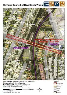 1. 1 2 3 4 5 6 7 8 9 10 11 12 13 14 "Johnston's Creek Sewer Aqueduct". New South Wales State Heritage Register. Department of Planning & Environment. H01325. Retrieved 2 June 2018. Text is licensed by State of New South Wales (Department of Planning and Environment) under CC-BY 4.0 licence.