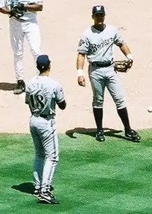Hernández (left) with the Milwaukee Brewers in 2001